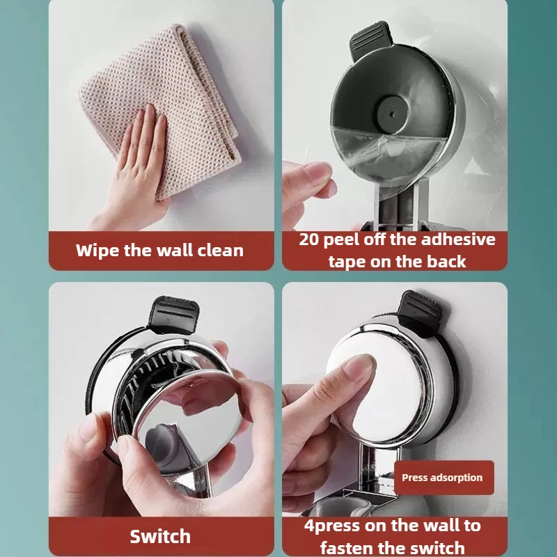 Nouveau Supports de pomme de douche 360 °   Support de douche mural à ventouse réglable, accessoires de salle de bains sans poinçonNouveau Supports de pomme de douche 360 ° Support de douche mural à ventouse réglable, accessoires de salle de bains sans poinçon