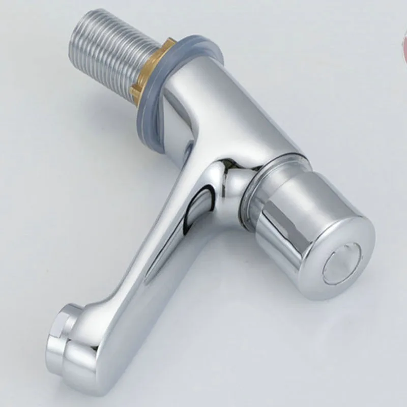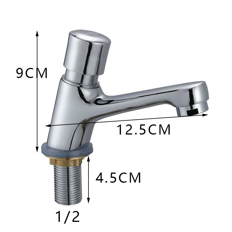 To turn the tap on you push the button head and then after a short period it switches off by itself.
