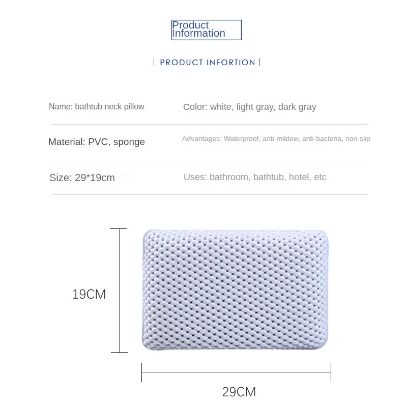 Oreiller de baignoire en mousse anti-alde avec ventouse, carré, petit, lavage, tête, salle de bain, hôtel, piscine |