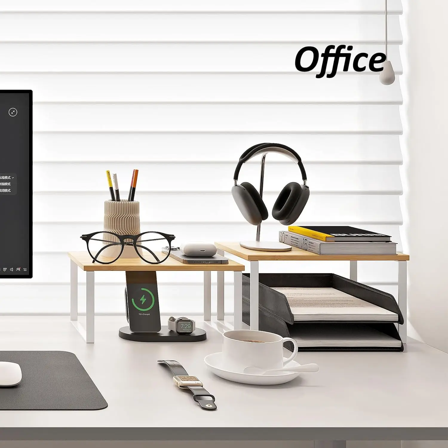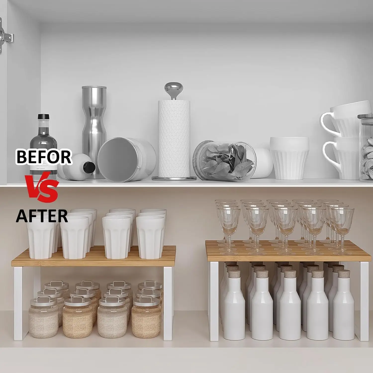 Organisateur d’armoire de cuisine, étagère à épices en bambou, ensemble de 2 organisateurs de comptoir peu encombrants pour placard de cuisine et de bureau empilable