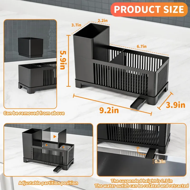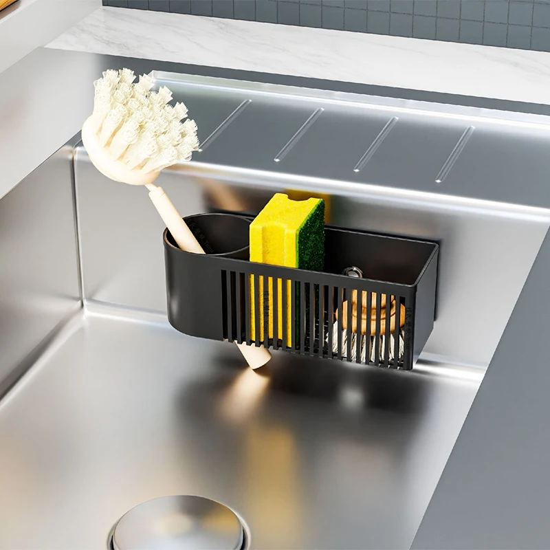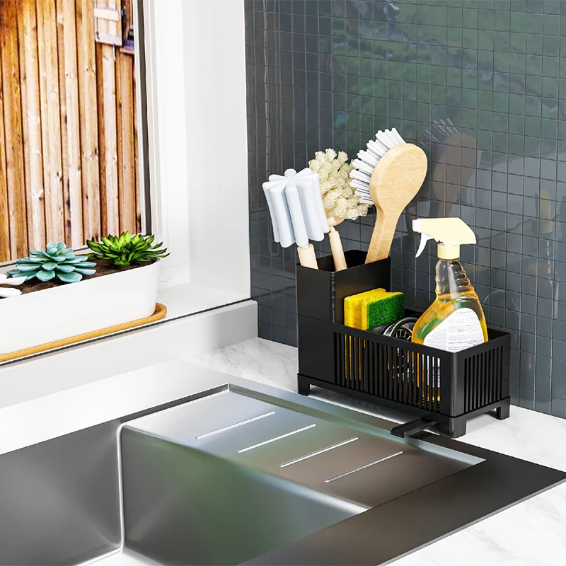 Organisateur de comptoir d’évier de cuisine-support de drainage pour savon à vaisselle, torchon, éponge et chiffon, support de rangement de cuisine multifonctionnel