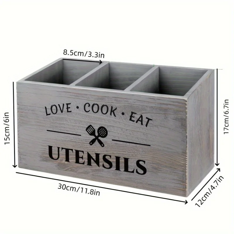 1 organiseur de cuisine avec compartiments en grille – Boîte de rangement pour ustensiles avec support de tri pour baguettes, organisateur de comptoir peu encombrant pour armoires, table à manger, bureau – Construction en bois recyclé – Cadeau idéal pour le Nouvel An chinois de pendaison de crémaillère, organisateurs et rangements de cuisine, finition en métal poli, compact Conception, matériau durable, employés de bureau