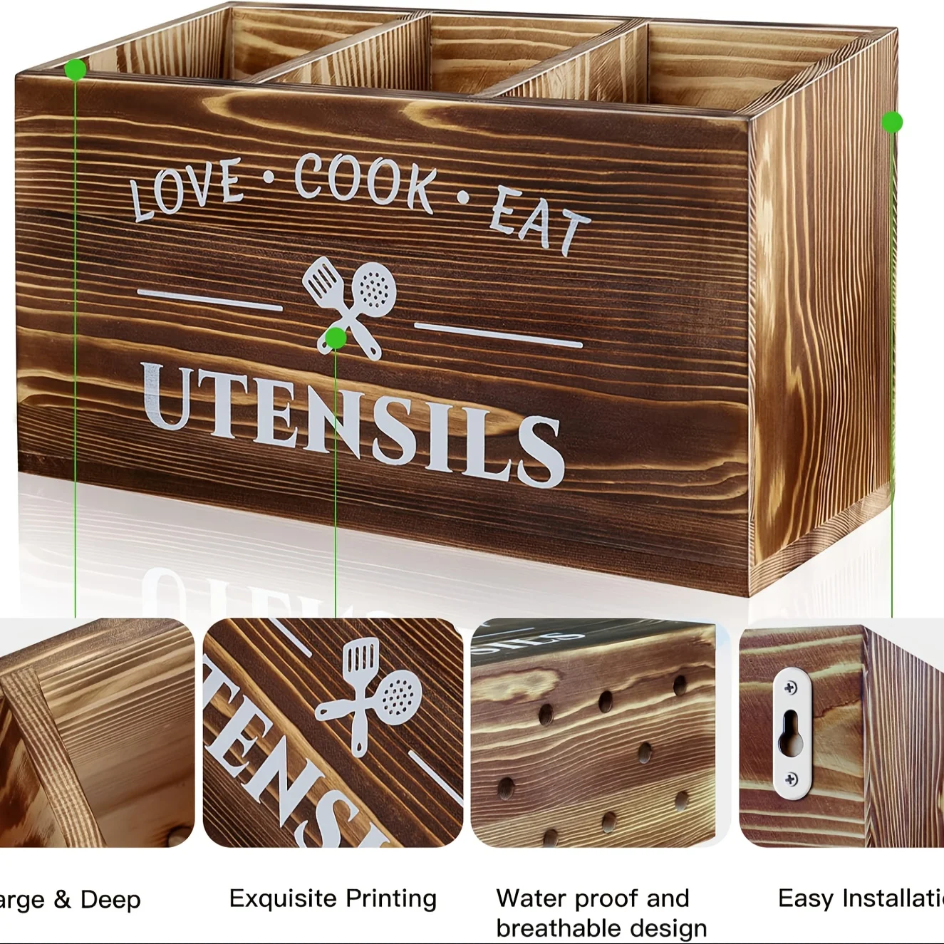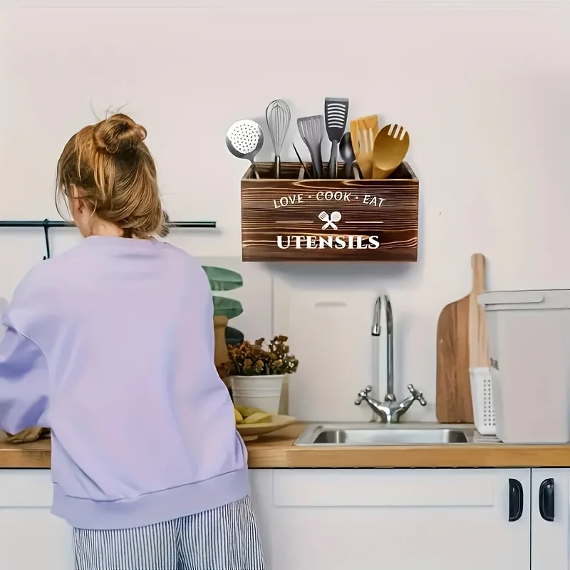 Organisateur de cuisine 1 pièce avec compartiments en grille-boîte de rangement d’ustensiles avec support de tri de baguettes, organisateur de comptoir peu encombrant pour armoires, table à manger, bureau-construction en bois recyclé-cadeau idéal pour le nouvel an chinois, organisateurs de cuisine et rangement, design compact, matériel durable