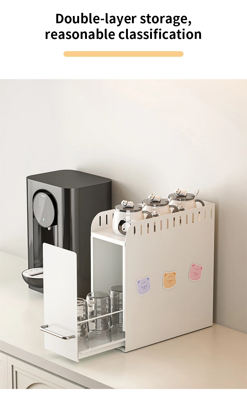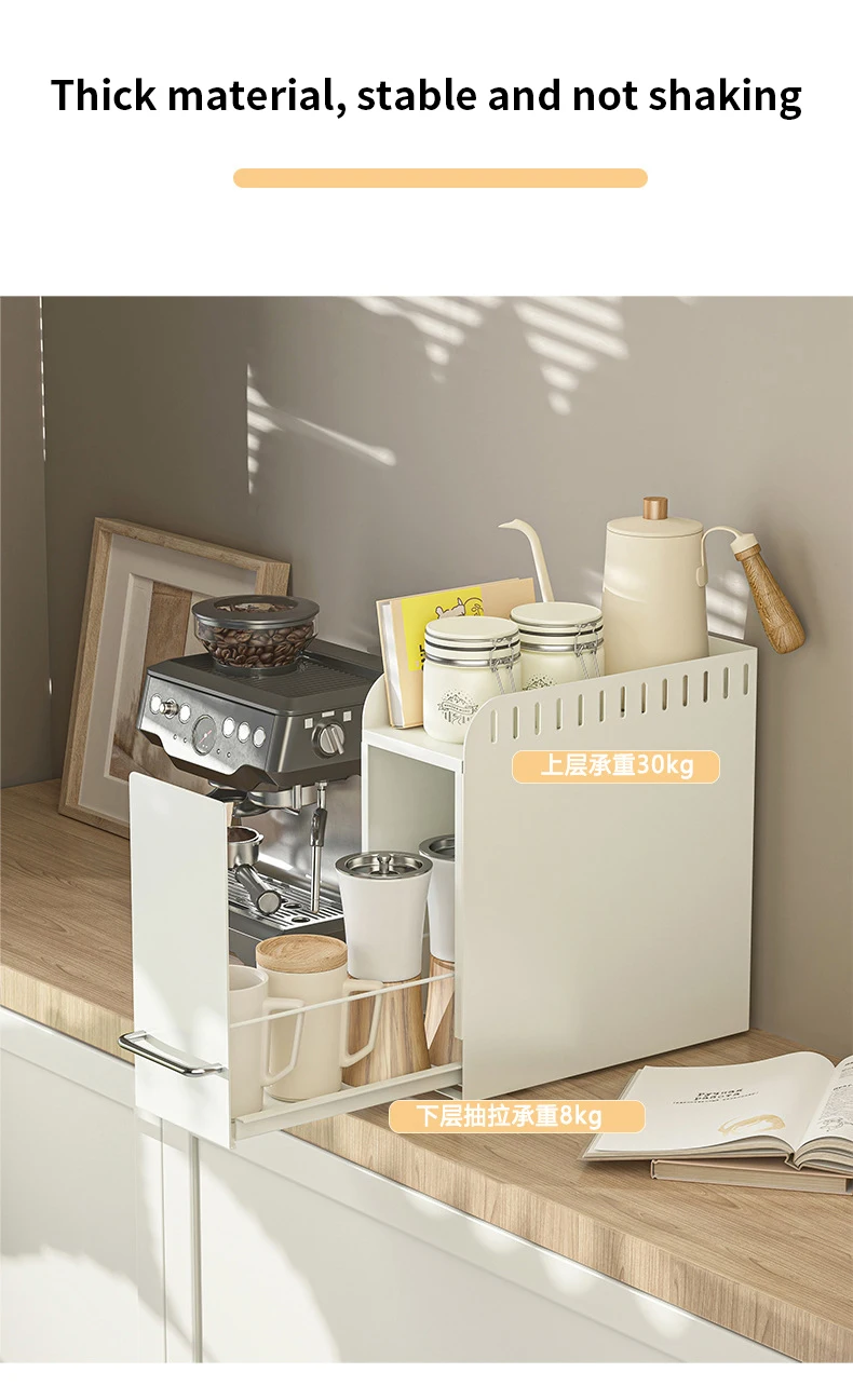 1.Conception peu encombrante : ce support de rangement double couche avec rails coulissants est conçu pour maximiser l’espace de votre comptoir.