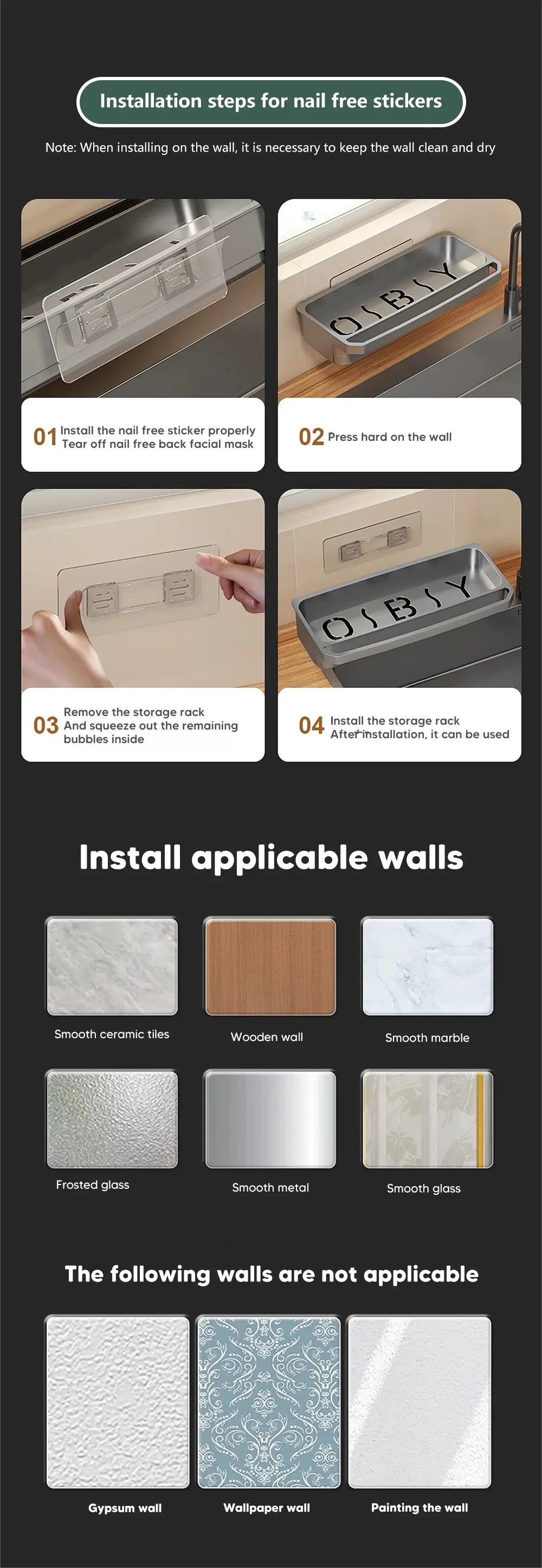 L’étagère de l’évier adopte une conception antidérapante, qui peut être fermement fixée au bord de l’évier pour empêcher l’étagère de glisser et de s’effondrer, assurant ainsi la sécurité de vos articles.