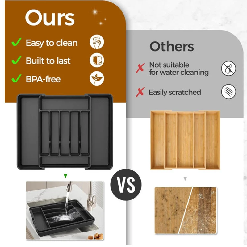 Idéal pour ranger la vaisselle, ce organisateur n’est pas juste pour les tiroirs mais peut également être utilisé dans les armoires et les étagères.