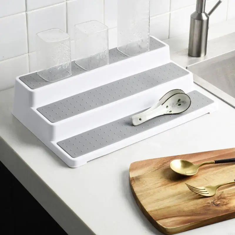 Pour une commodité ajoutée, chaque niveau est fourné avec une surface antidérapante pour garder vos pots et des bouteilles à droite, porter que vous placé pour garantir que vos articles pour glisser le support et casser dans le processus.