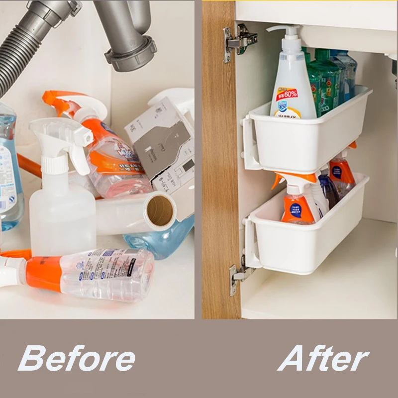 Support organisateur sous évier, organisateur de bouteilles d’épices de cuisine et articles ménagers divers, gain de place