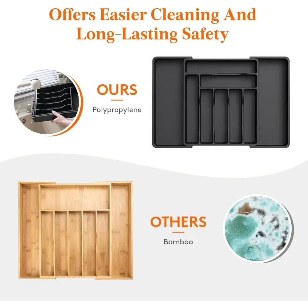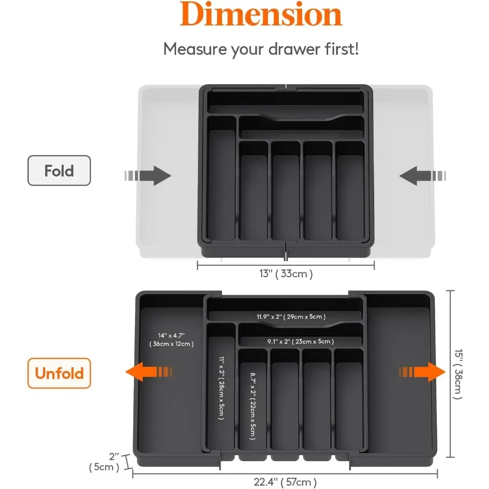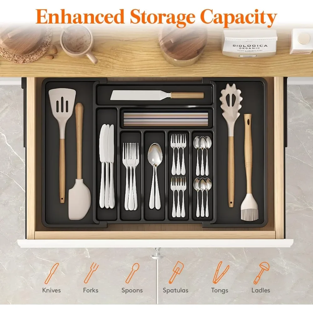 Organisateur tiroir extensible couverts ustensiles modulable réglable compartiments ajustables plastique robuste finition mate antidérapant couleurs noir gris blanc vert turquoise |