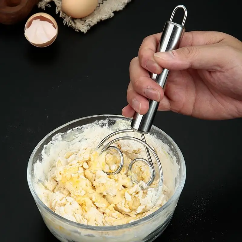 Outils de mélangeur de cuisson de cuisine, fouet à pâte en acier inoxydable pour mélange de pain, farines de gâteaux et de pâtisserie avec trou de suspension