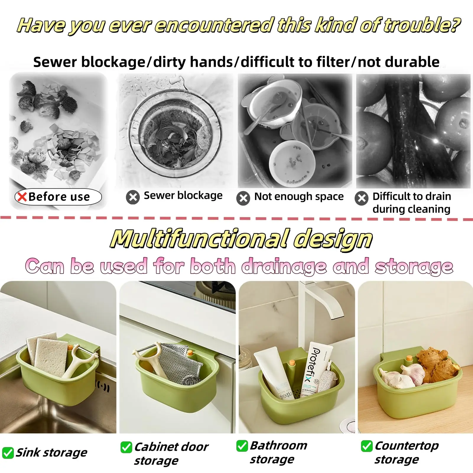 Panier de vidange de cuisine de forme carrée, filtre suspendu pour évier, panier à benne automatique réglable, brosse éponge, support pour fruits et légumes |