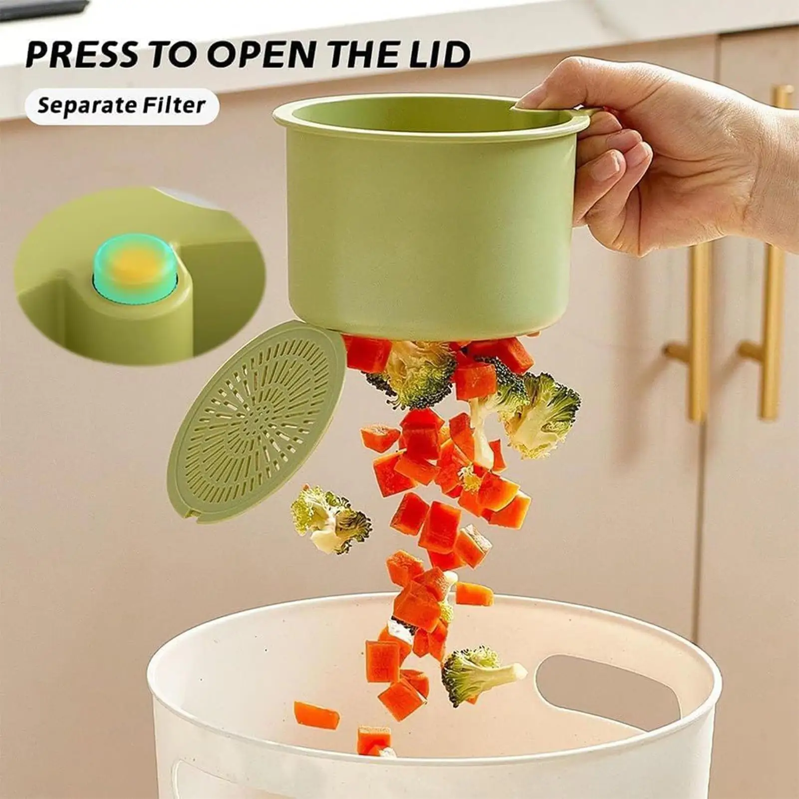 3. Système de filtration amélioré : les trous en maille dense et le couvercle inférieur à dégagement par pression fonctionnent ensemble pour filtrer efficacement les particules alimentaires, assurant une élimination fluide des déchets et un nettoyage facile dans votre évier.