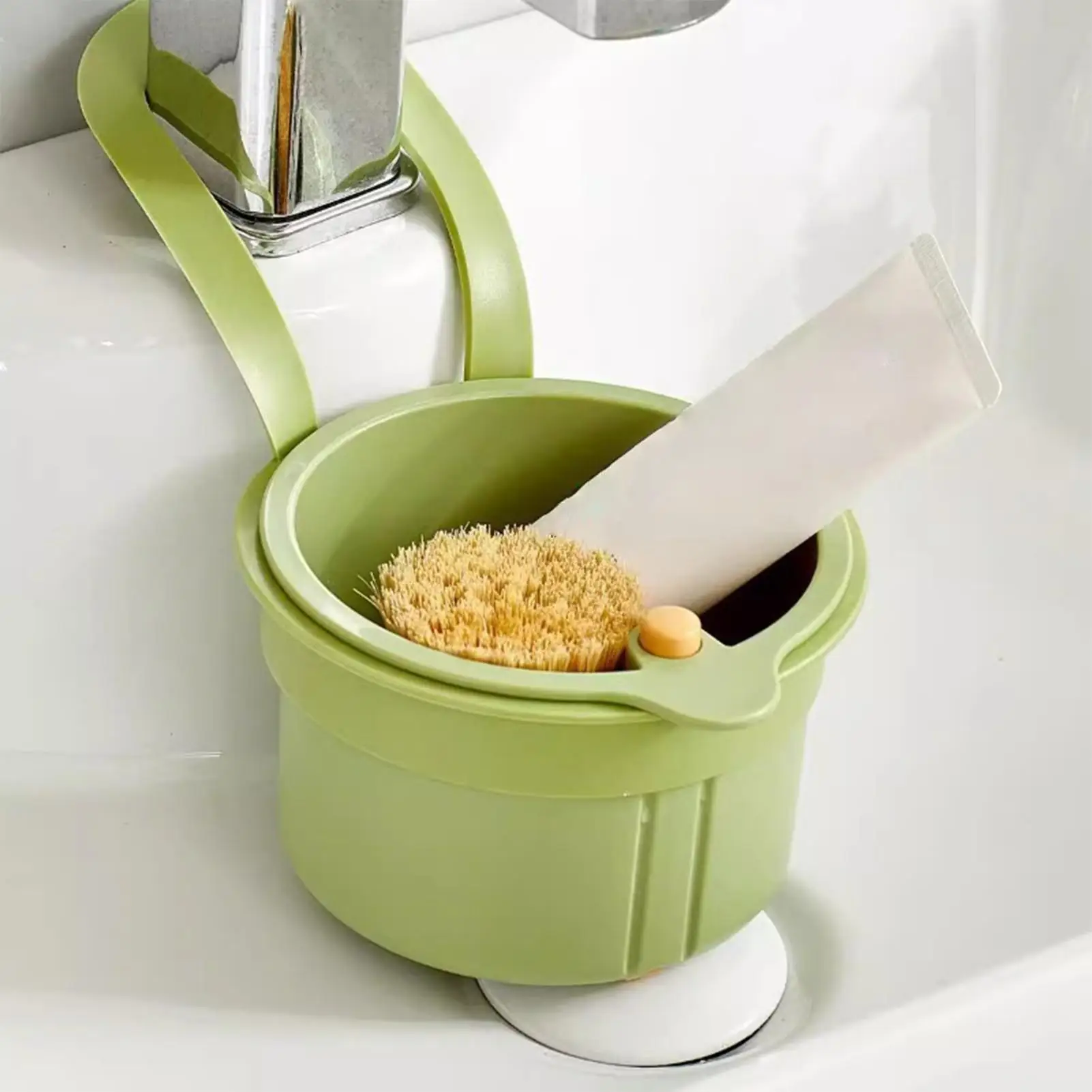 4. Conception suspendue : capture les particules alimentaires sans effort à l’aide d’une conception suspendue sur robinet qui garantit l’ordre dans la cuisine et réduit l’encombrement de l’évier en maintenant un système de drainage anti-obstruction