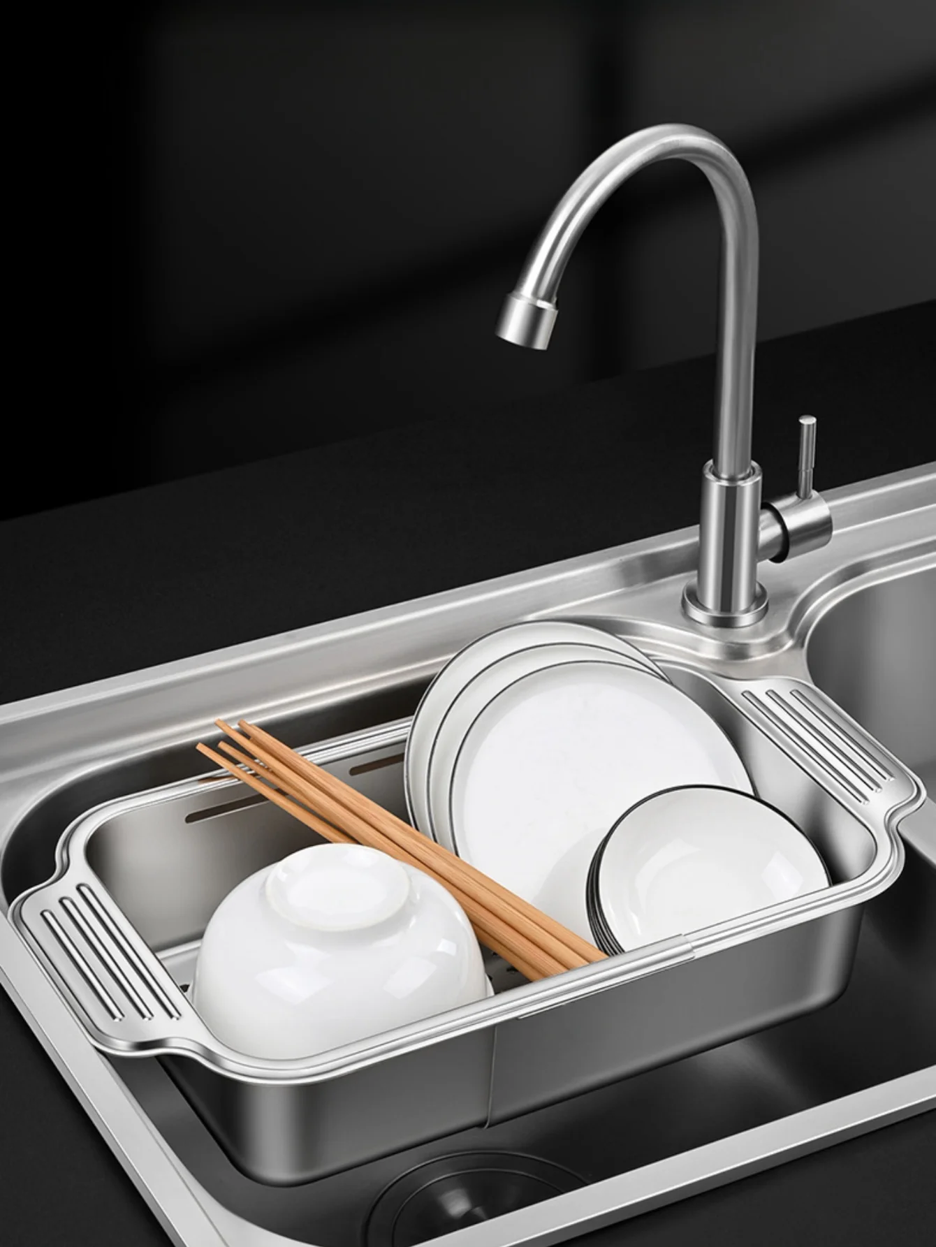 Panier de vidange d'évier de cuisine, support de séchage suspendu, porte-éponge à savon, panier de vidange rétractable en acier inoxydable |