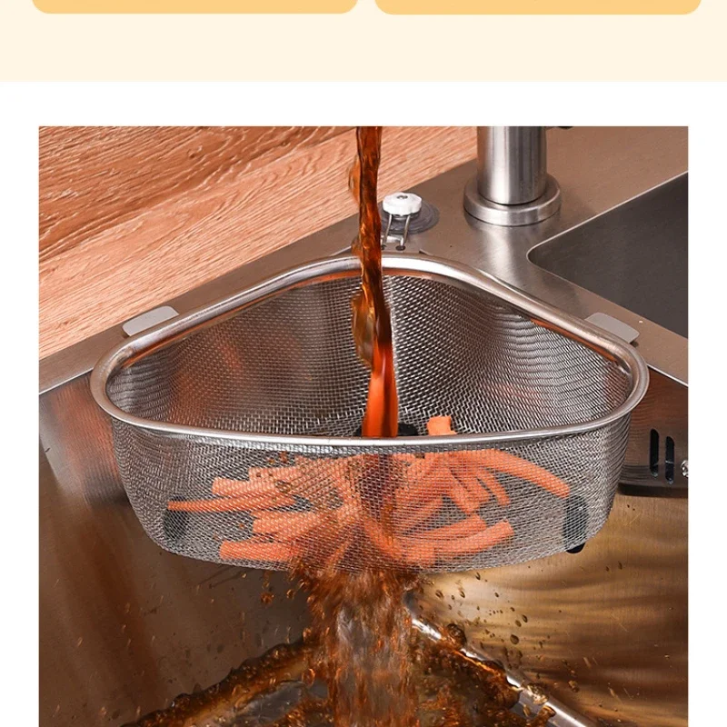 Panier de vidange d'évier en acier inoxydable, outils de cuisine, Triangle, filtre alimentaire, organisateur, étagère, égouttoir, accessoires ménagers
