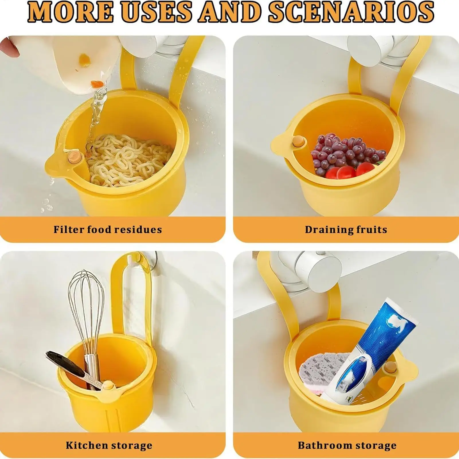 3. Filtre d’évier pratique : conçu pour piéger les épluches de fruits, le chapelure et les débris alimentaires, le fond en maille fine du récupérateur de nourriture pour évier de cuisine permet un nettoyage quotidien sans effort, assurant une zone de travail propre et efficace pendant la préparation des aliments.