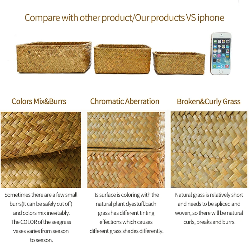 1.Matériau recyclée : 100 % fabriqué en jonc de mer, produits faits à la main avec fil, naturel et écologique. Chaque panier sera un peu différent.Beau et pratique, frais sauvage. Chaque est soigneusement conçu à la main, ainsi que les détails sera légèrement différents.