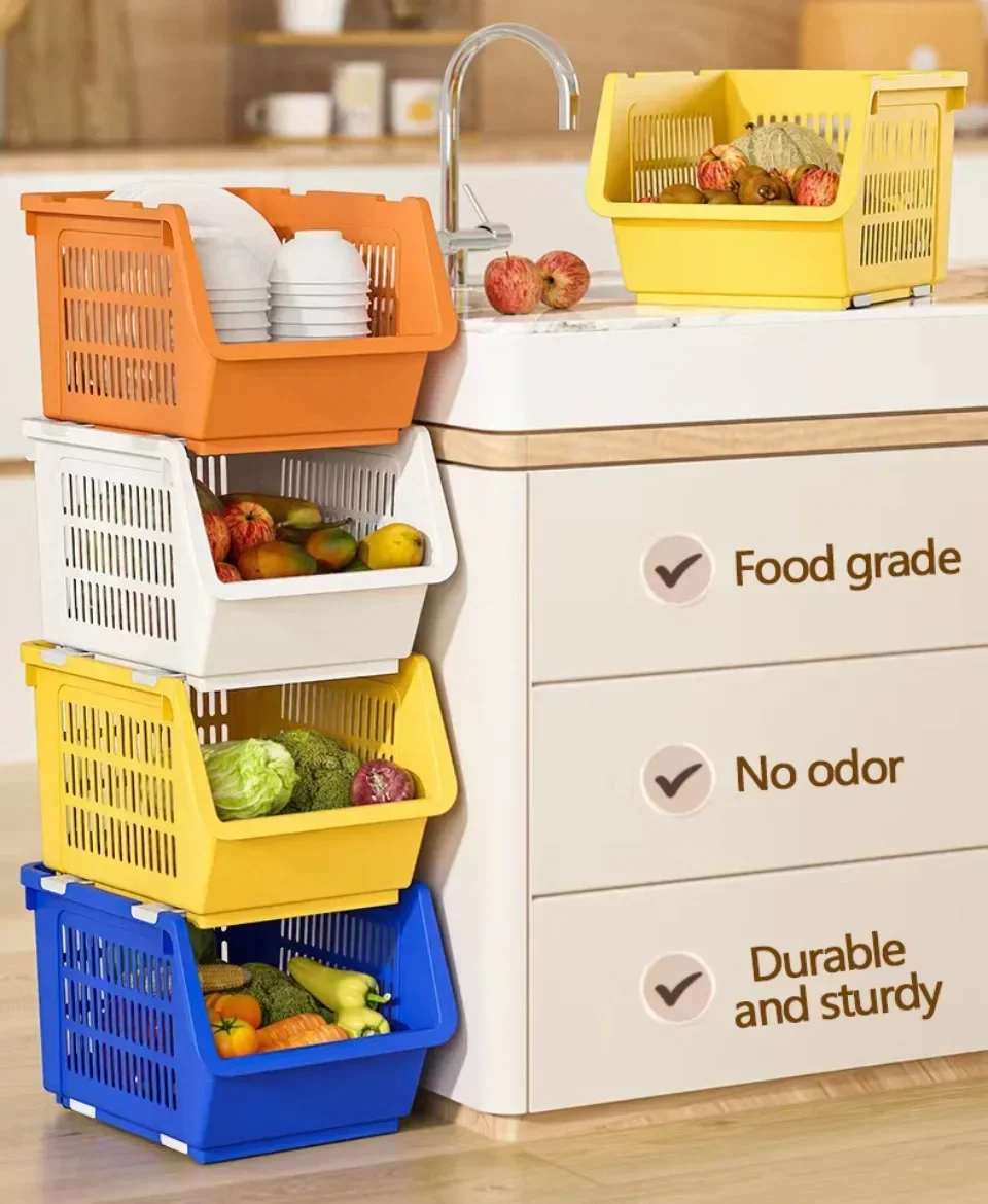 Paniers de rangement multicouches, étagères de rangement de cuisine et de salle de bains, support de stockage de fruits Durable de grande capacité, panier empilable de cuisine