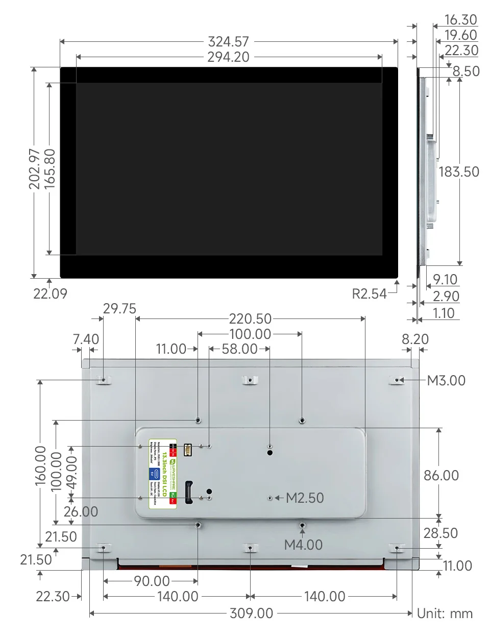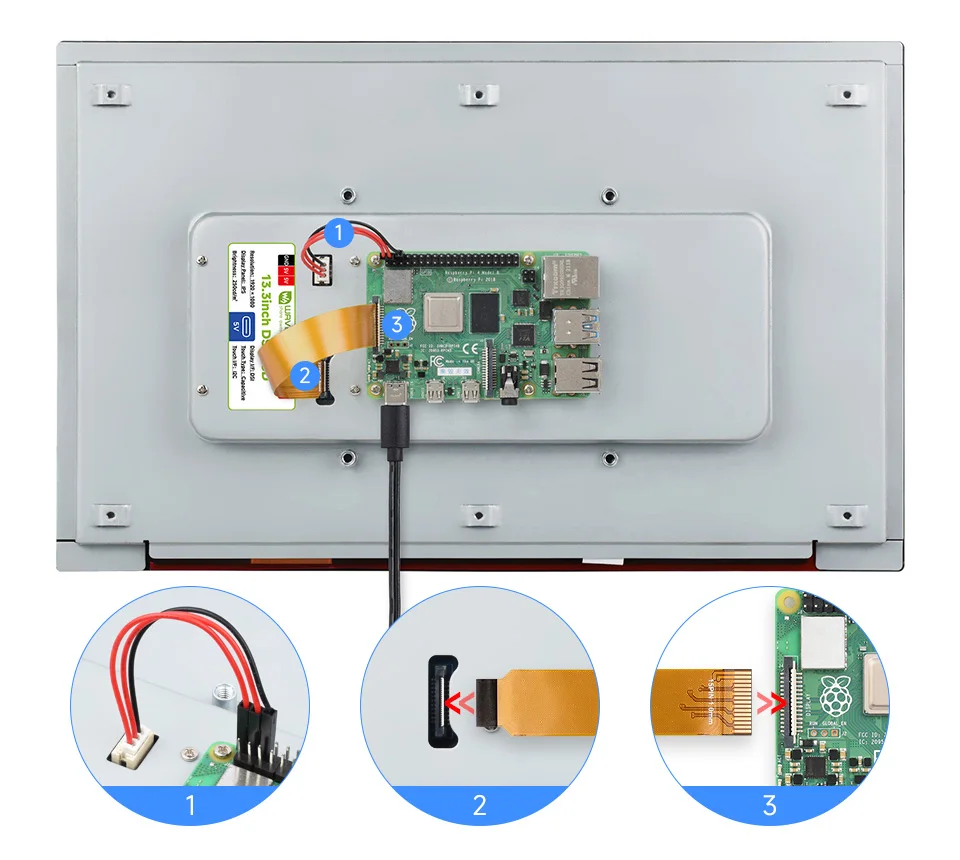 Écran tactile capacitif DSI haute résolution de 13,3 pouces, 1920 × 1080, IPS, panneau en verre trempé, interface DSI, tactile 10 points, panneau arrière entièrement métallique