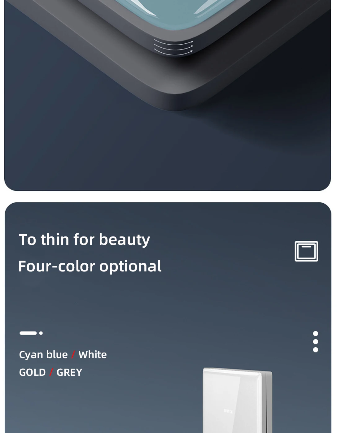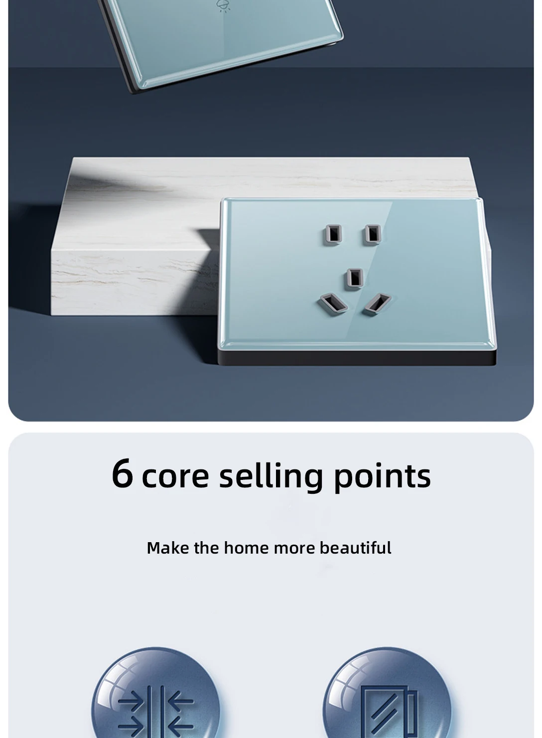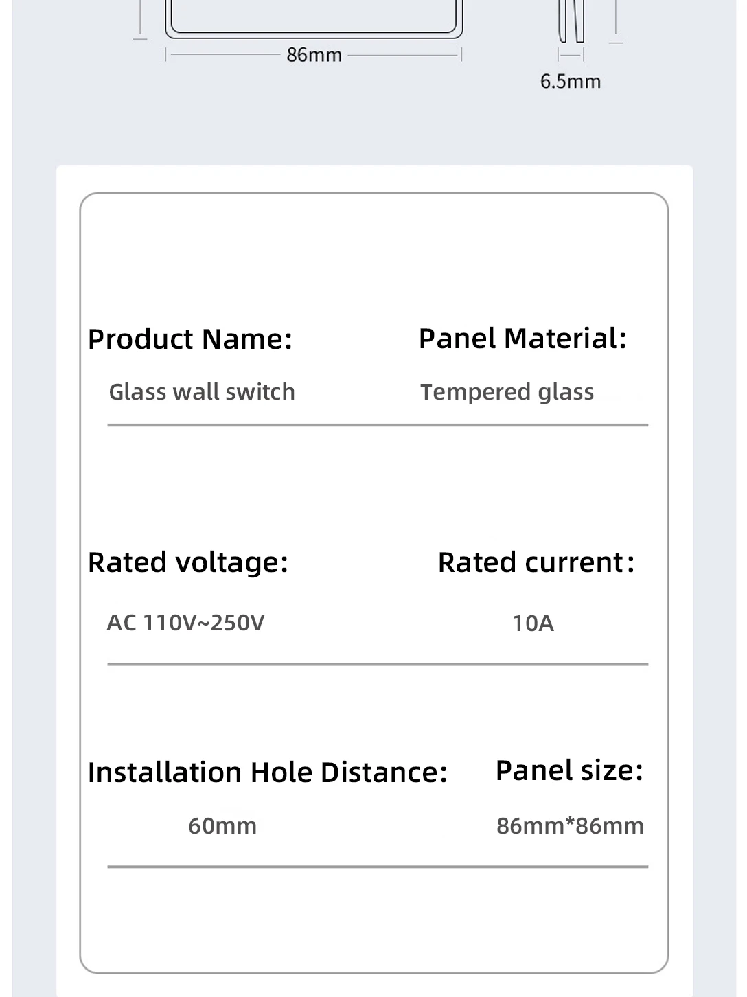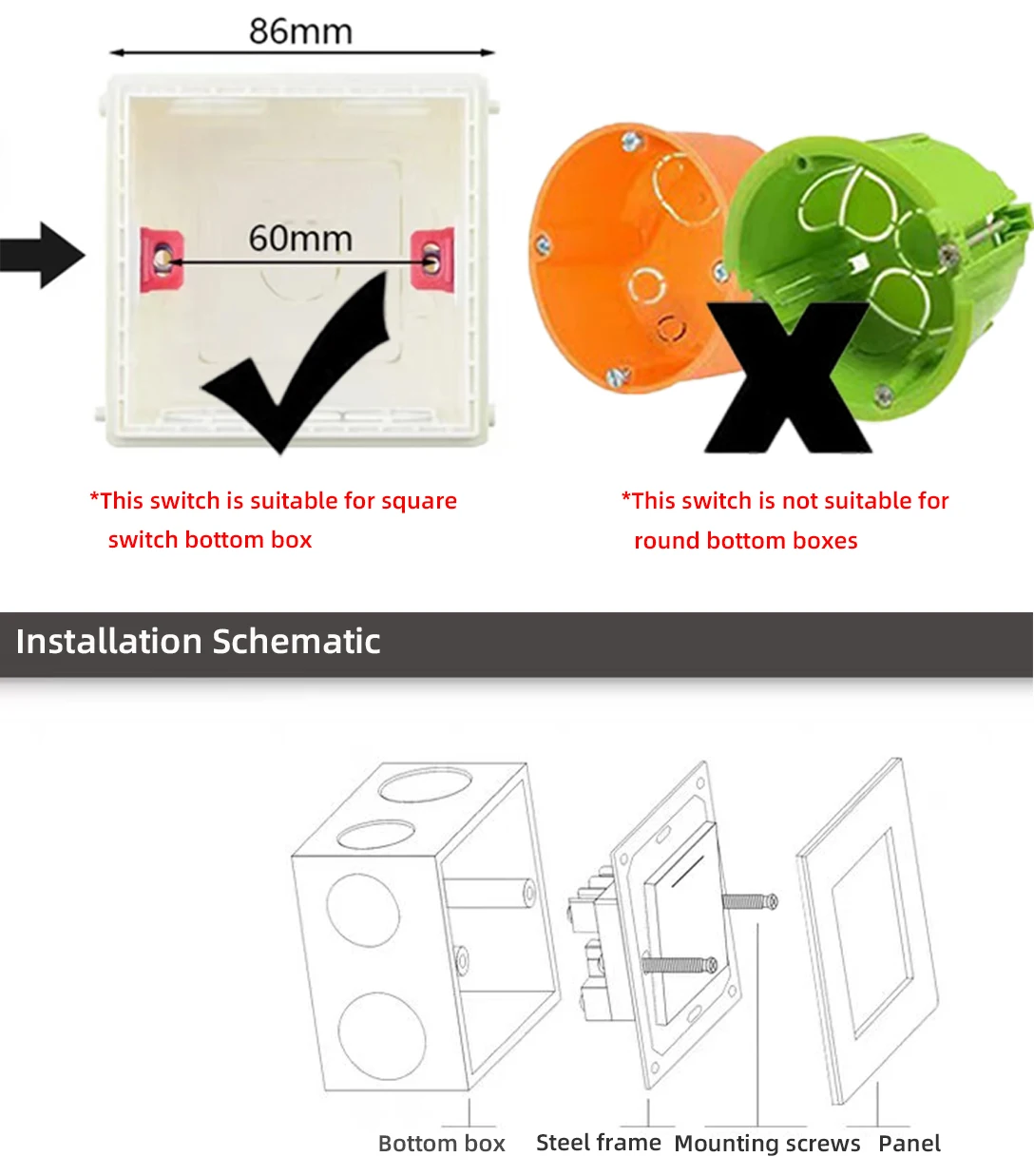 • Suitable for mounting bottom box: Type 86 Square Mounting Base Box