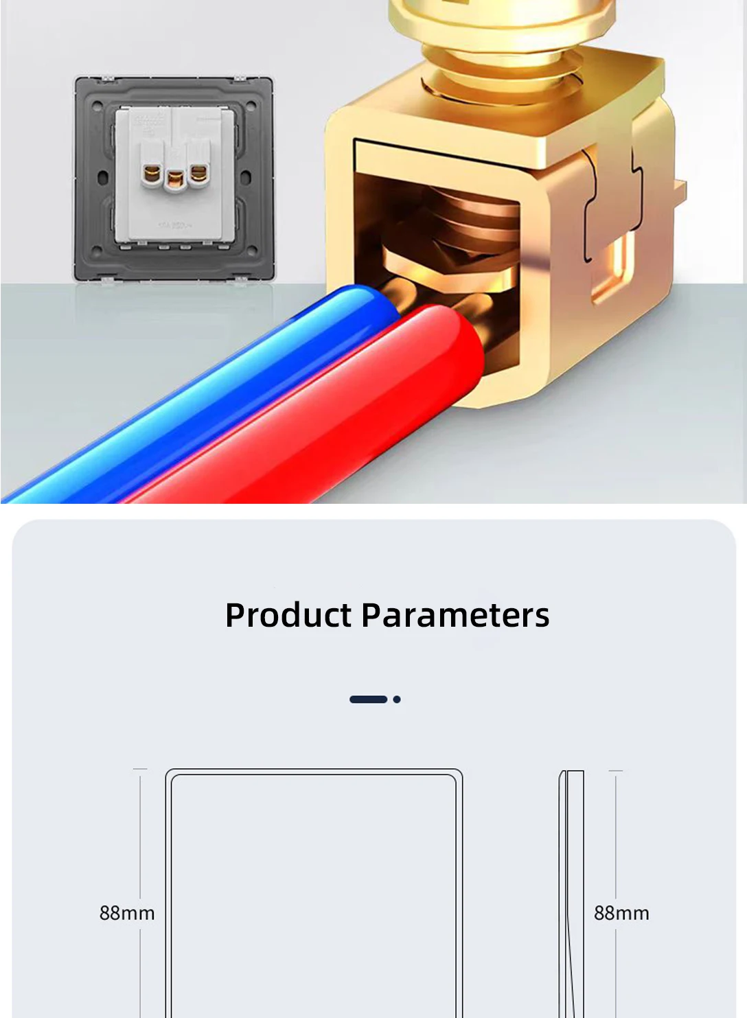 "J'ai été très satisfait de cet interrupteur mural en verre trempé. L'installation a été simple et rapide, et le rendu est vraiment élégant. Bien que le produit soit un peu plus cher que d'autres, la qualité des matériaux et la solidité de la construction en font un achat qui en vaut la peine. Le seul bémol est que le boîtier est un peu plus volumineux que ce à quoi je m'attendais, mais cela ne nuit pas à l'esthétique globale."