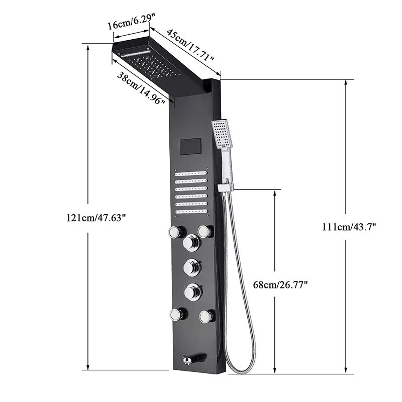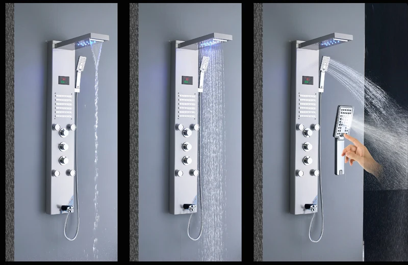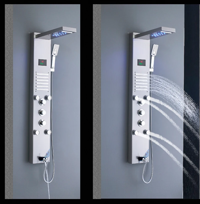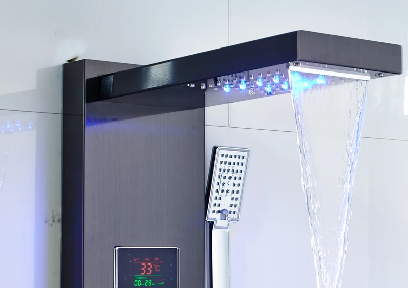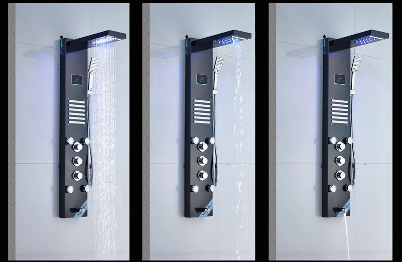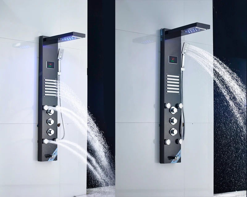 Panneau de douche LED Cascade Pluie SPA Jets de massage Colonne de douche Tour Affichage numérique de la température de l’eau