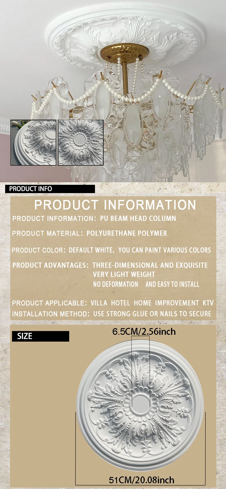 - installation method: Use strong glue or drive thin nails