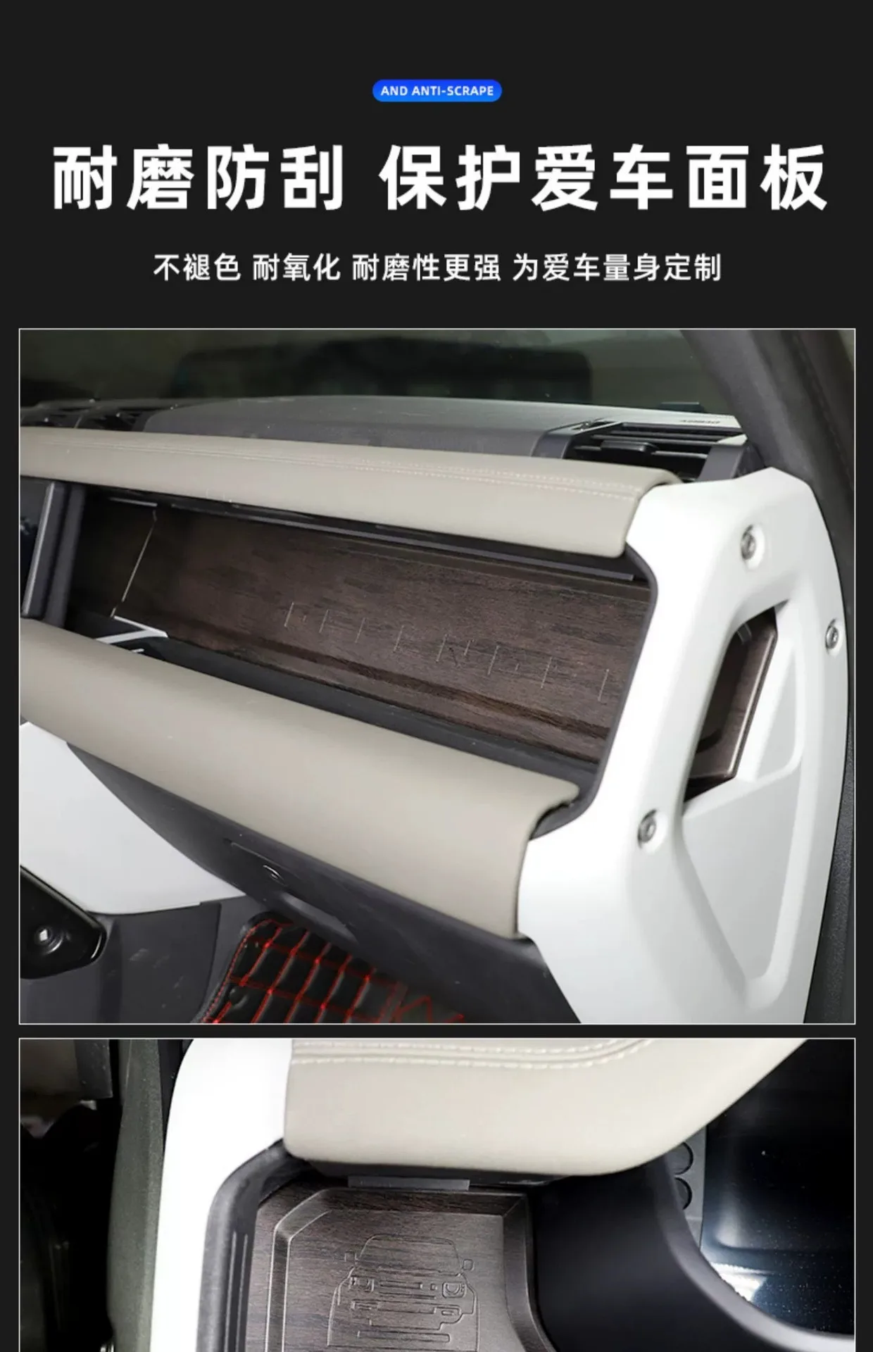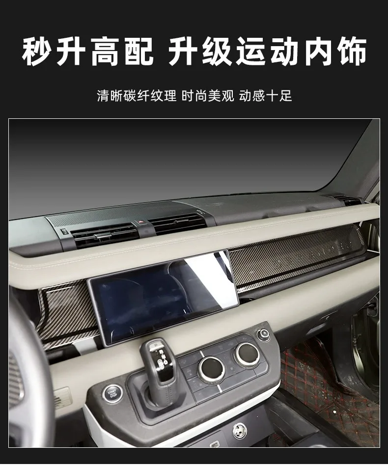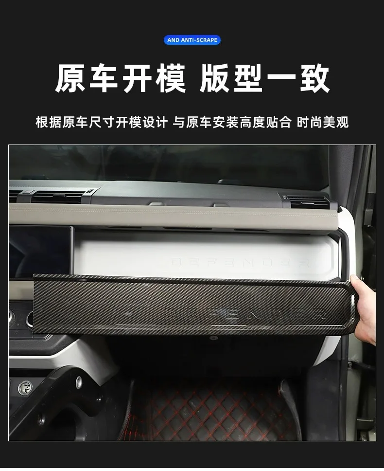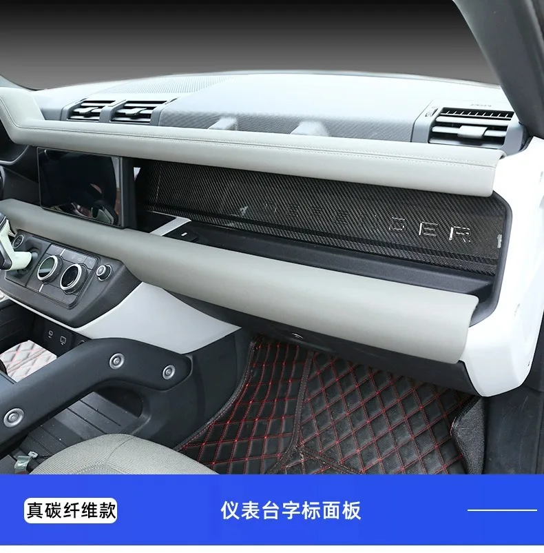 Panneau décoratif tableau bord passager Land Rover Defender 90 110 compatible 2020 2025 fibre carbone noir tressé brillante |