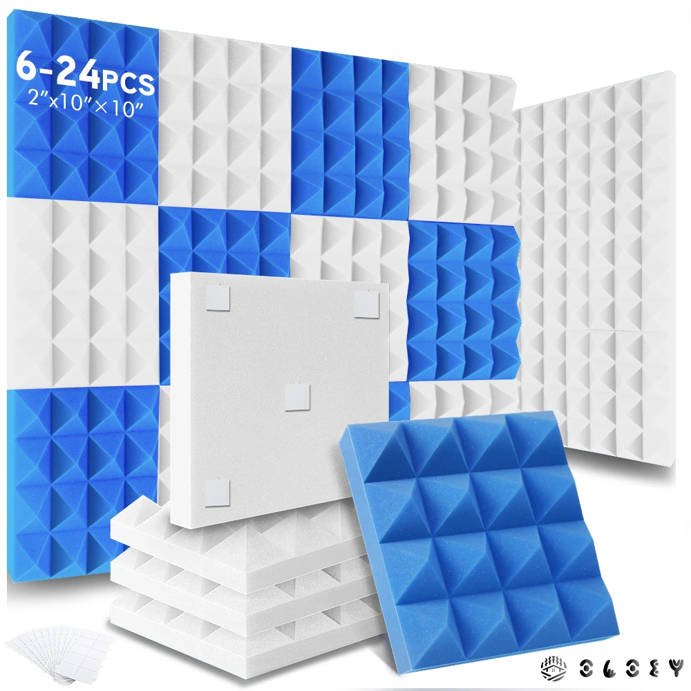 Panneau insonorisant mural 6/12/24 pièces, mur de mousse auto-adhésif d’isolation acoustique de chambre à coucher, panneaux de mousse acoustique pyramidaux