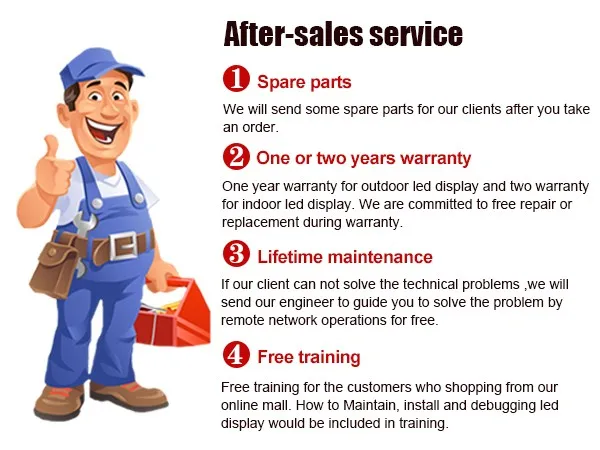 4: Au même temps, nous pouvons fournir des clients avec une formation professionnelle sur l’opération et de l’entretien du système d’affichage LED Garantie de sécurité de dépannage d’affichage supprime les travaux manuels