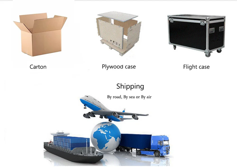 5.Si vous souhaitez acheter d’autres composants, tels qu’une alimentation, une carte de réception, une carte d’envoi, un processeur vidéo, un armoire LED, d’autres fils, ainsi qu’un flight case, une poutre suspendue, etc., ou vous souhaitez acheter directement un écran LED complet qui est produit et assemblé par nos soins, n’hésitez pas à nous contacter, nous sommes toujours là pour vous de nous parler.