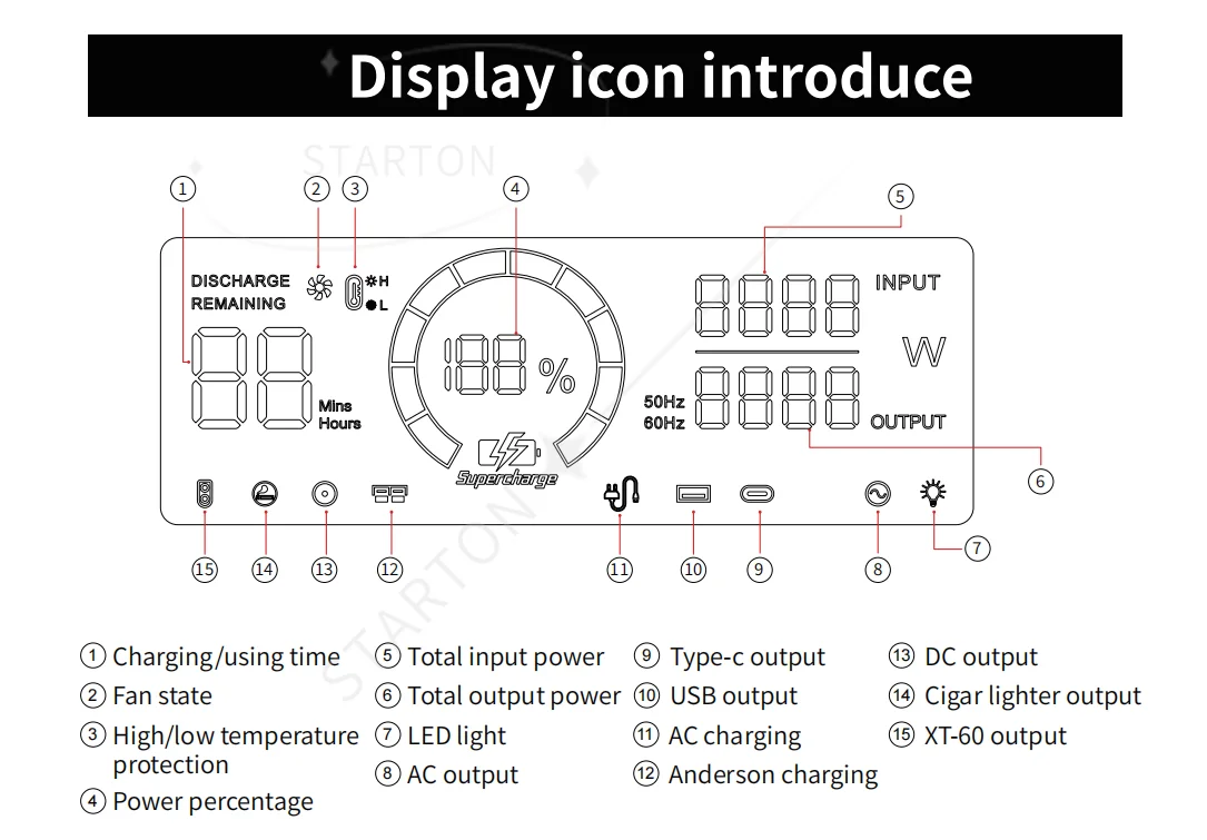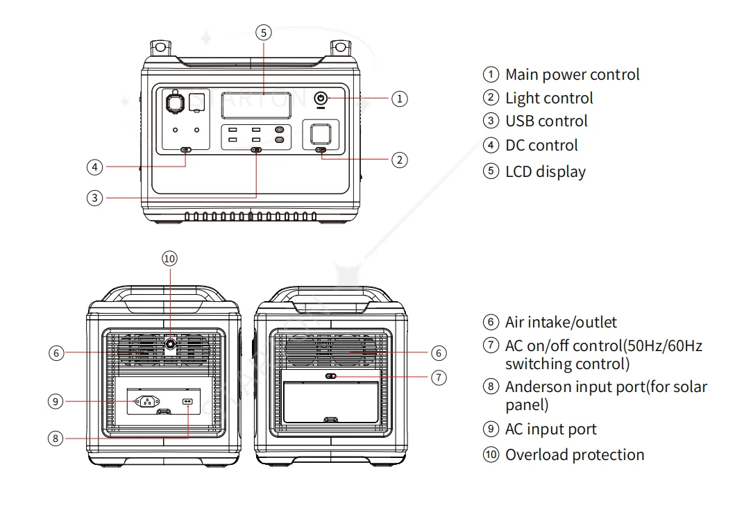 • Special Features: Type C, Flashlight, jump starter, RV Port, Cigar Lighter, External Bat