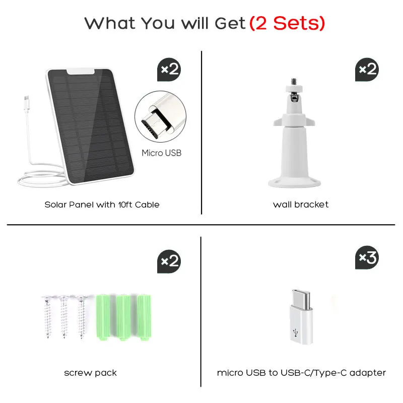 Ce panneau solaire peut absorber en continu l’énergie solaire et gardez l’alimentation par la caméra lorsque vous ensoleillé. Pas besoin d’un s’instalar à l’appareil photo et charge de l’appareil photo encore manuellement.