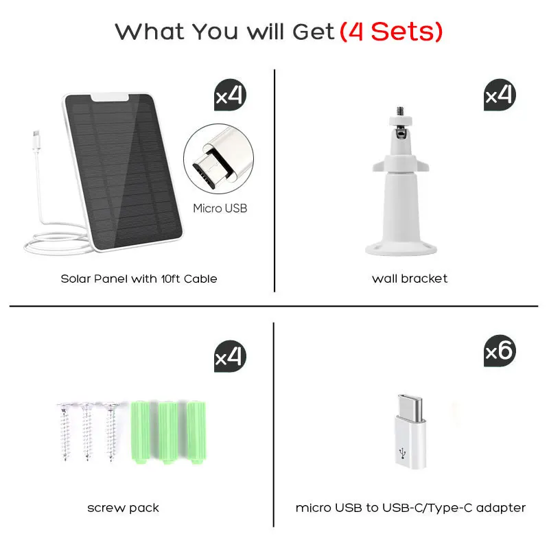 Ce panneau solaire peut absorber en continu l’énergie solaire et gardez l’alimentation par la caméra lorsque vous ensoleillé. Pas besoin d’un s’instalar à l’appareil photo et charge de l’appareil photo encore manuellement.