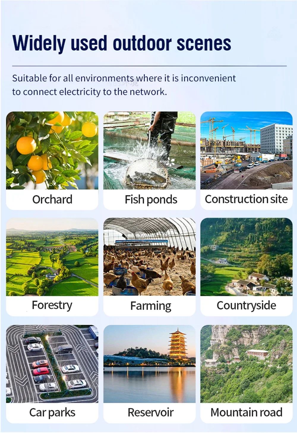 - Power supply method: Solar powered