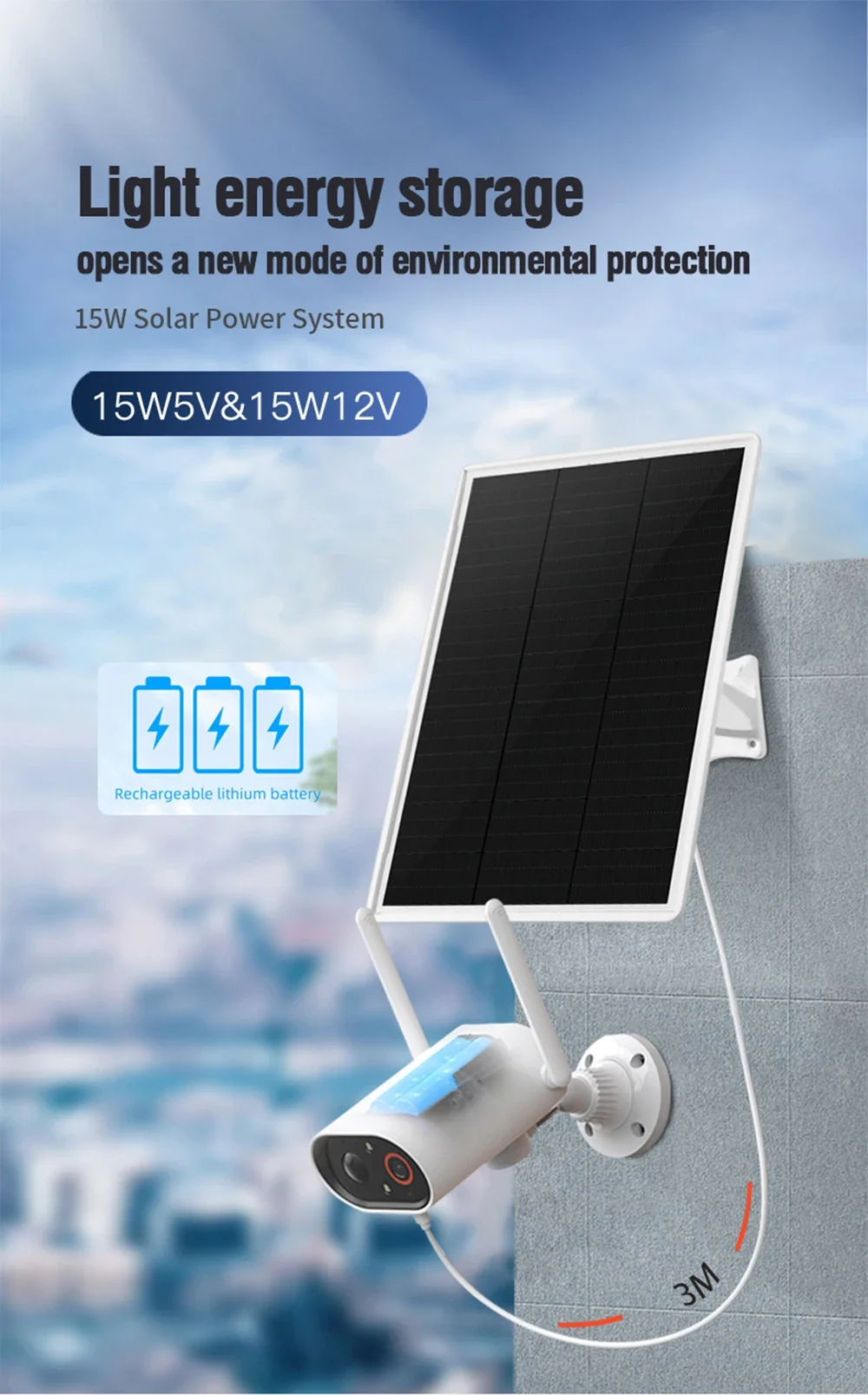 - Power supply method: Solar powered