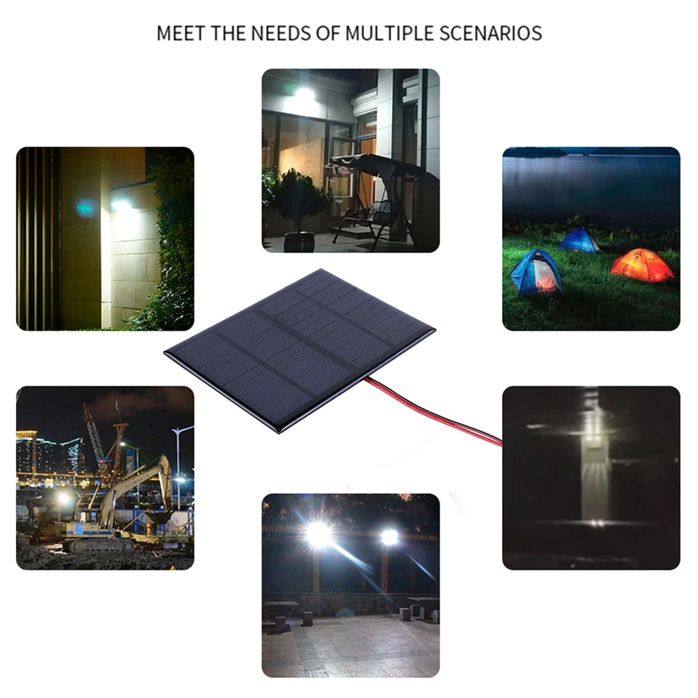 Feature: 1. Exceptional Conversion Efficiency: Maximize your sun capture with our mini solar panel, designed for peak performance and a high rate of energy conversion. Every ray is converted into more power, fueling your devices with greater efficiency. 2. Outstanding Low-Light Performance: Keep your energy flowing with our small solar cell, specifically engineered to maintain output in dim conditions. Overcast days can’t stop your power supply from this persistent and efficient energy source. 3. High-Efficiency Polycrystalline Cells: The advanced technology of our polysilicon solar epoxy cell charger sets a new standard in solar efficiency. These high-grade polycrystalline cells convert sunlight into energy with impressive proficiency. 4. Minimal Degradation: Our solar charging panel stands the test of time with minimal performance loss. and reliable, it continues to provide high levels of energy, year after year, with scarcely any degradation. 5. Extended Durability: Invest in the long-term with our solar panel charger that promises extended durability. It’s constructed to endure, granting you the freedom to enjoy sustainable solar energy for an extended period without constant upkeep. Specification: Adapt to the scene: Application: Suitable for all kinds of low-power electrical appliances, emergency lights, advertising lights, traffic lights, household lights, electric fans, such as solar water pumps, solar street lights, small solar systems Note: