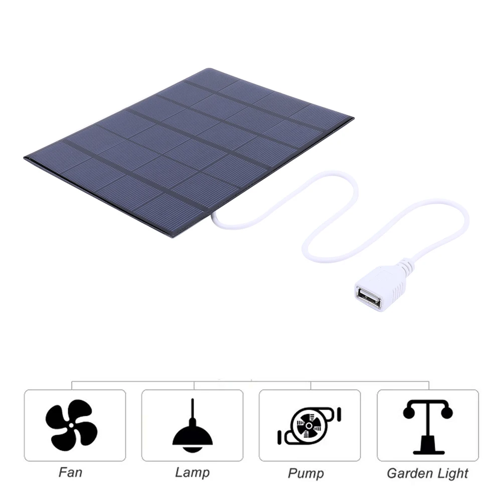 Panneau solaire Portable USB 5W 6V, chargeur de panneau solaire, panneaux d’urgence monocristallins pour téléphone Portable/charge de batterie 3-5V