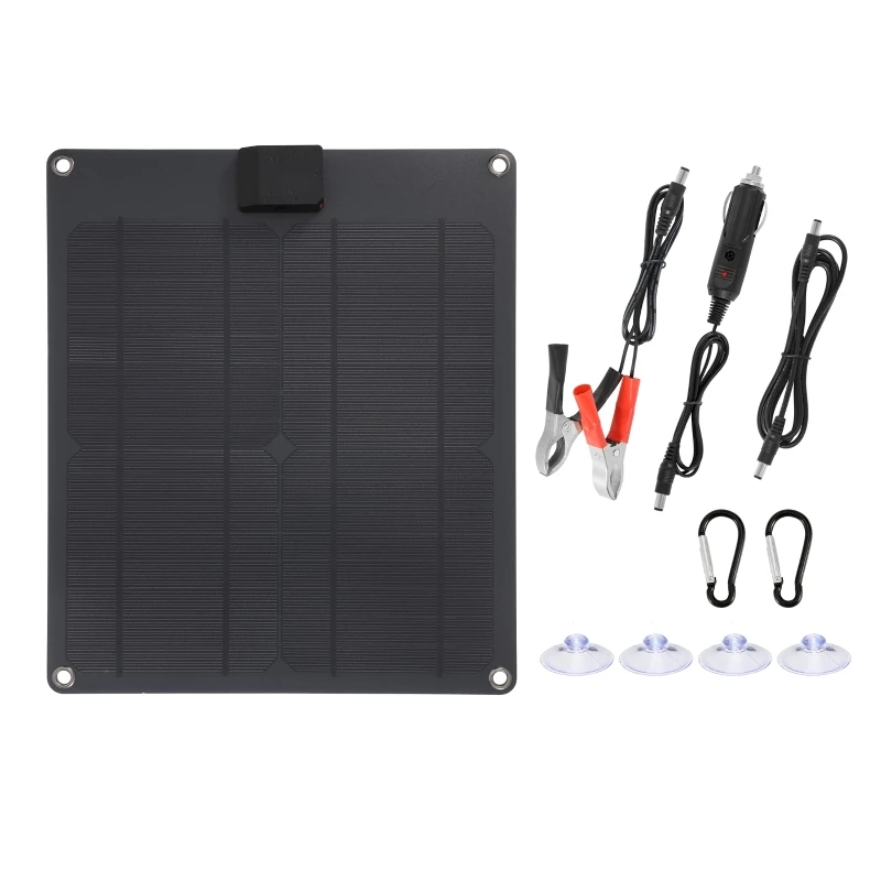 Panneau solaire extérieur en silicium polycristallin 100W 18V, chargeur de téléphone portable extérieur, panneau de charge solaire avec câble DC noir