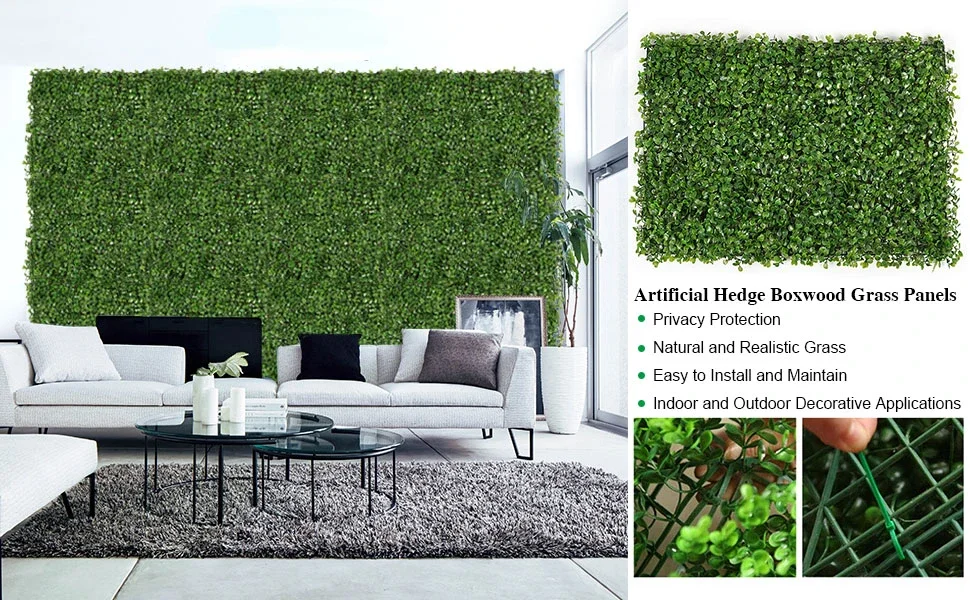 10 "x 10"/24 "x 16" panneaux de buis de haie artificielle panneau de toile de fond de mur d’herbe pour décor de toile de fond de cour de clôture intérieure extérieure