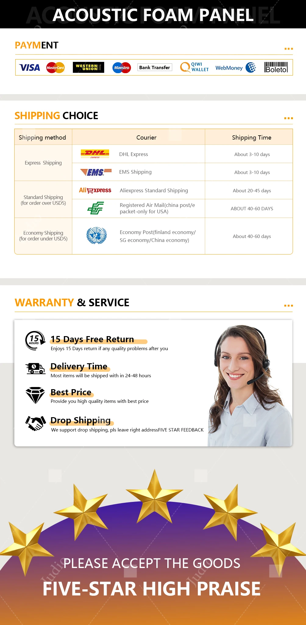 Idéal pour le traitement en direct dans les studios d’enregistrement professionnels ou domestiques, les bureaux commerciaux ou à domicile, les espaces de répétition ou les cinémas maison.Facile à façonner et à couper sur mesure, les changements n’affecteront pas les performances, contiennent des ignifuges et ont passé les tests environnementaux SGS.