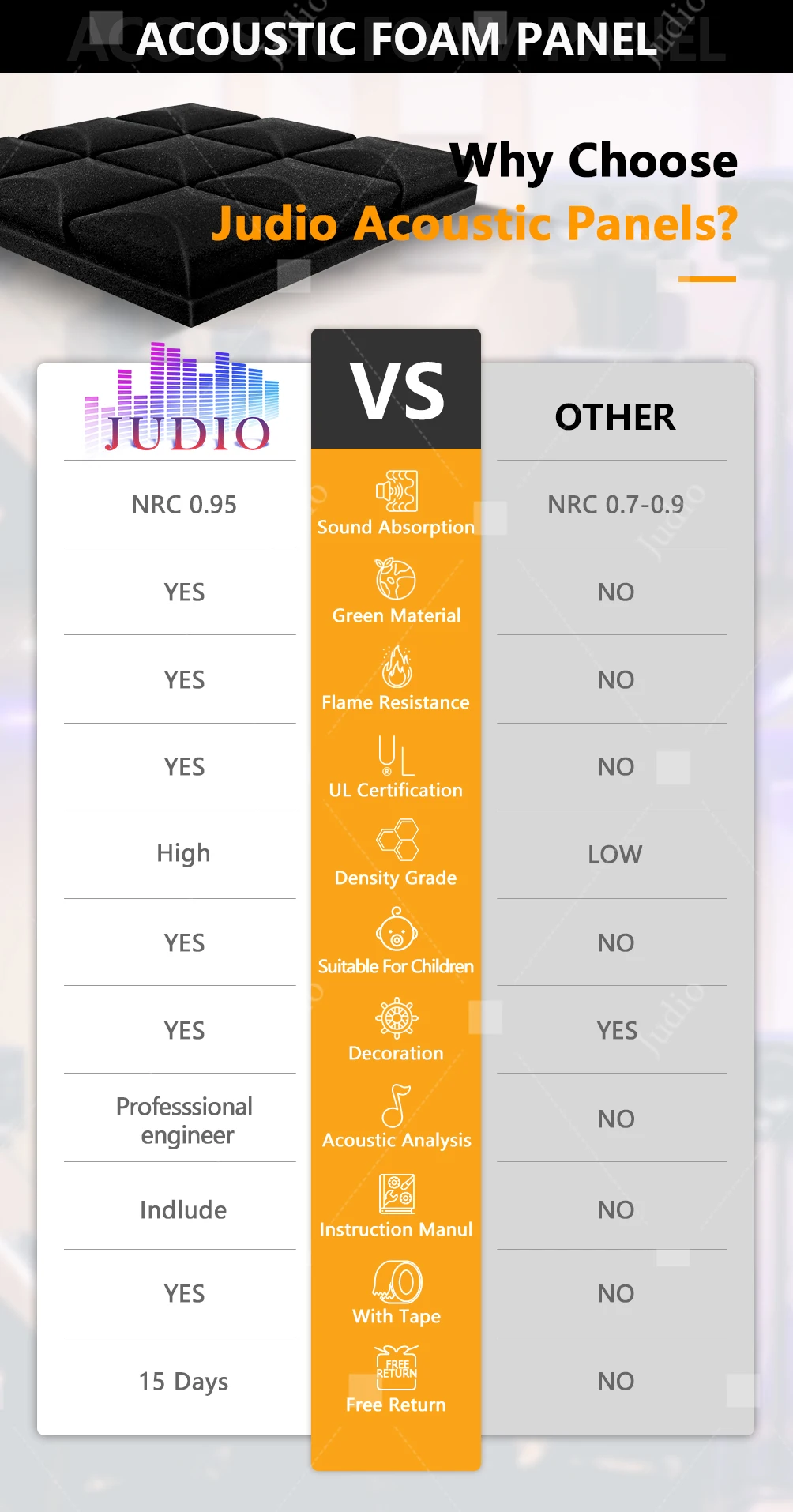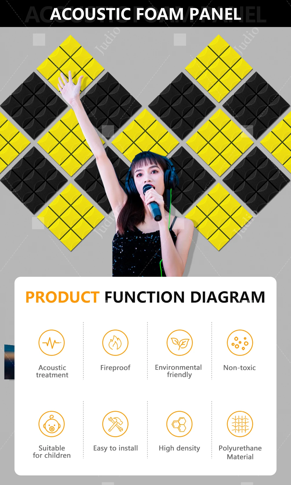 ■Judio est un fabricant de matériaux insonorisants avec dix ans d’expérience, nous avons commandés pour fournir des panneaux insonorisants abordables et sains pour un traitement acoustique.