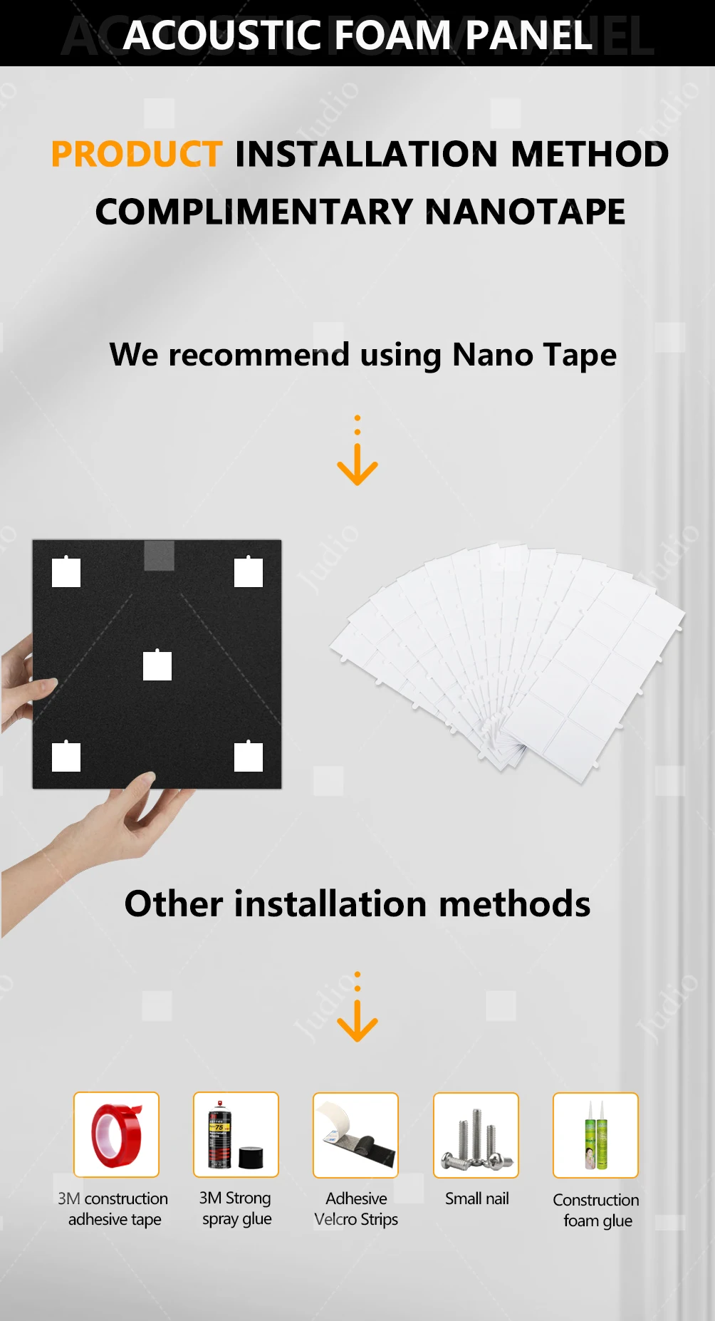 • Judio est un fabricant de matériaux insonorisants avec dix ans d’expérience, nous nous engageons à fournir des panneaux insonorisants abordables et sains pour le traitement acoustique.