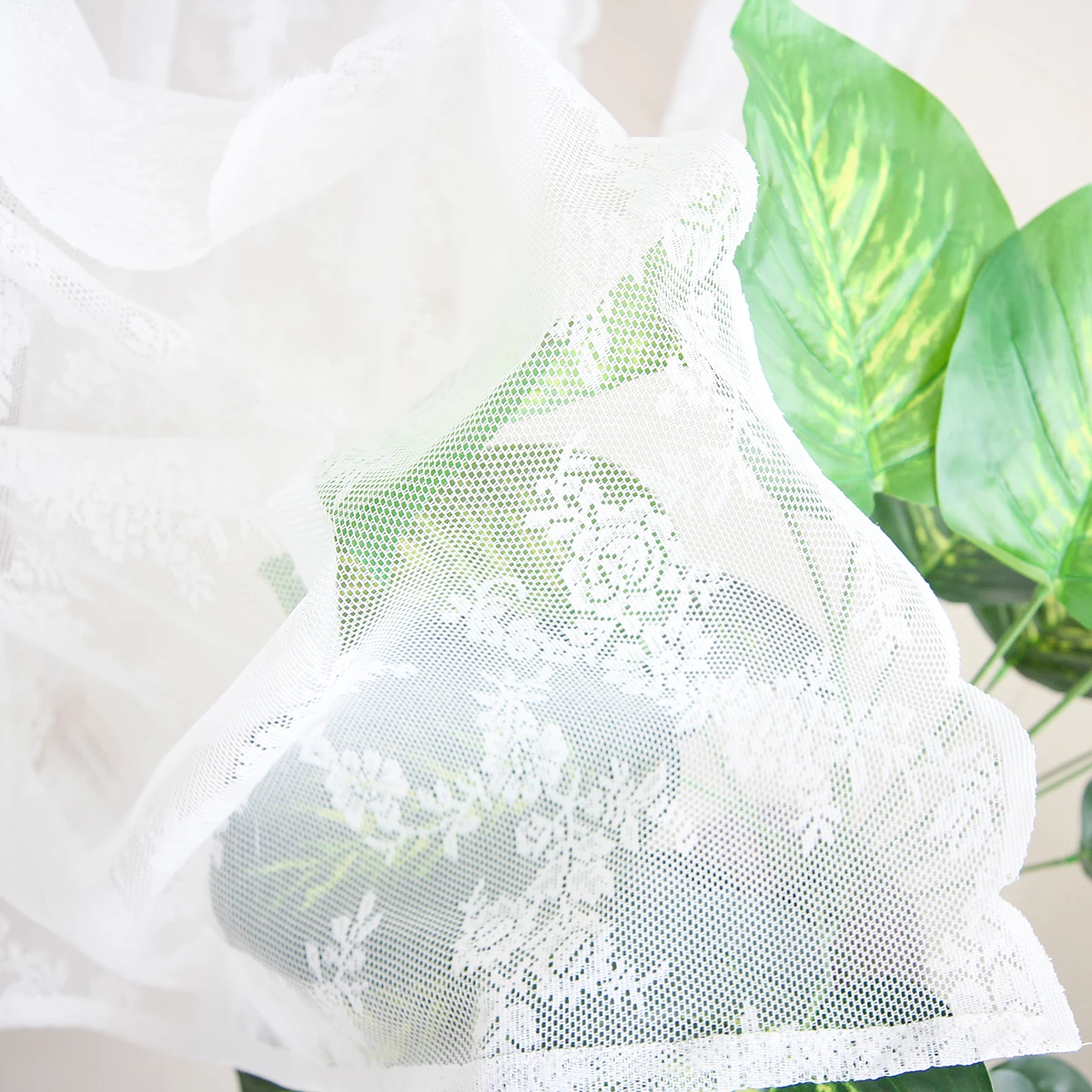 4.Design élégant et floral. Doux dentelle les rideaux invitent la lumière dans le pièce tout en offrant une intimité intérieure en même temps ;
