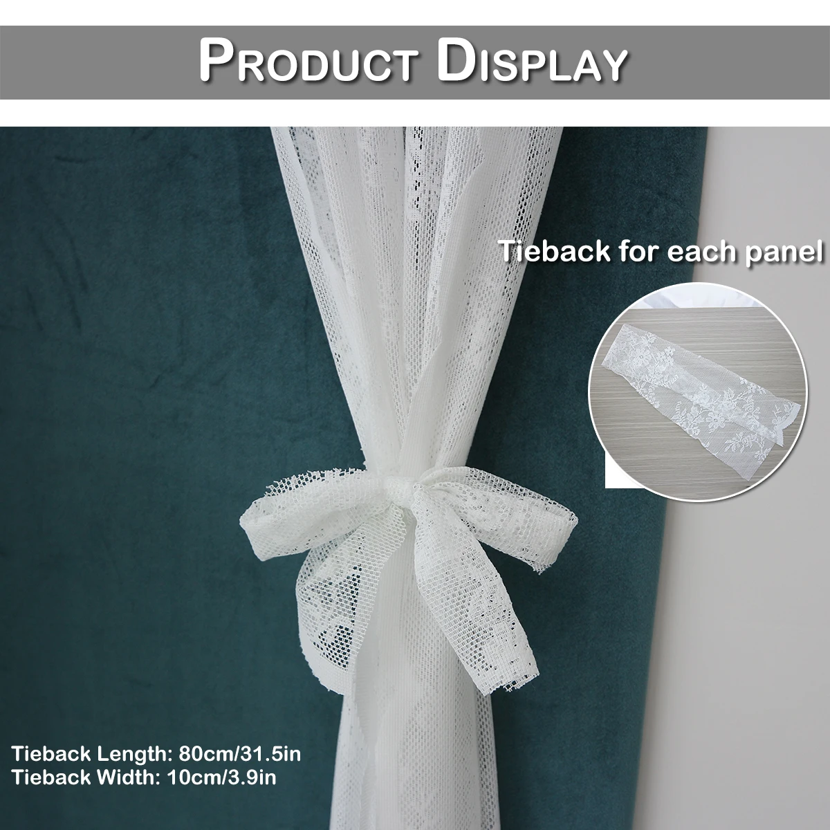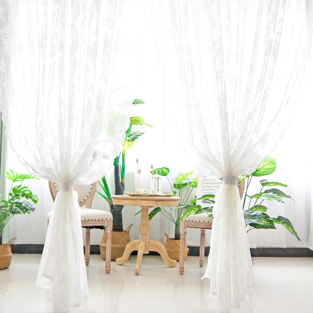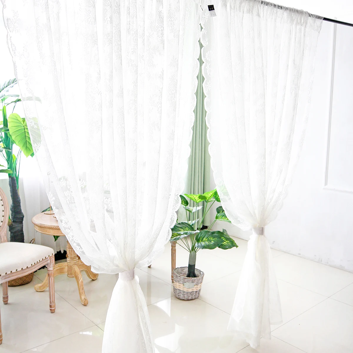 1.Blanc ; Dentelle ; Transparent ; Floral ; Bordure ondulée ; Embrasses gratuites (assemblant le rideau ;