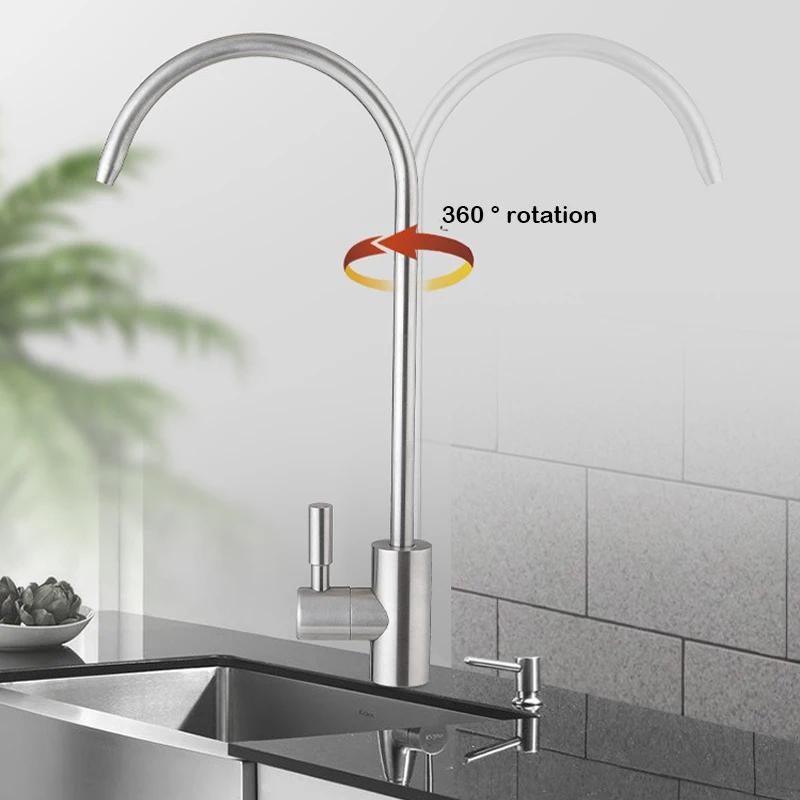 Robinet d’eau de cuisine en acier inoxydable 304 chromé 1/4 « 3/8 » robinet d’osmose inverse à connexion rapide pour purificateur d’eau potable