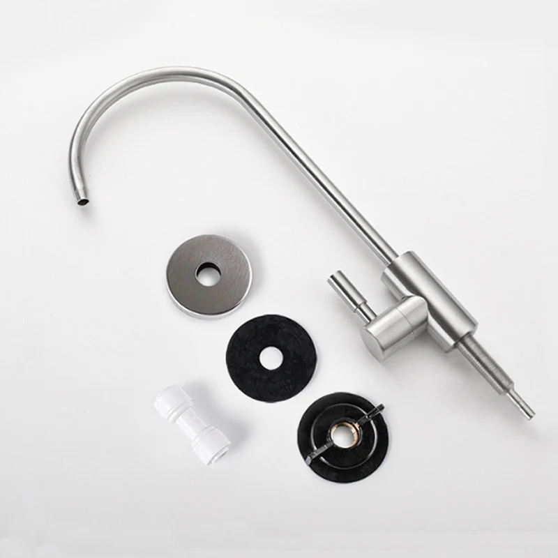 Robinet d’eau de cuisine en acier inoxydable 304 chromé 1/4 "3/8" robinet d’osmose inverse à connexion rapide pour purificateur d’eau potable