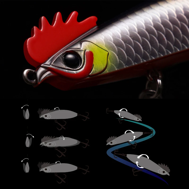 Bien qu’il s’agisse d’un leurre à crayon, il a une posture de nage proche de celle d’un méné.