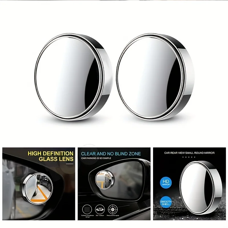 Petit miroir rond en verre haute définition monté sur voiture, rétroviseur réglable à rotation de 360 degrés pour aide au recul de voiture |