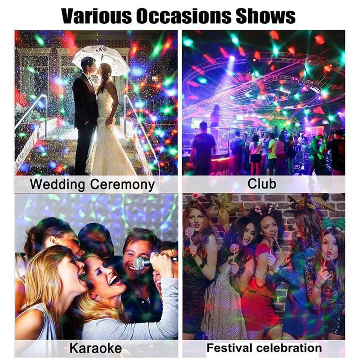 Plug and play-ils projettent un motif tourbillon multicolore sur le mur, le plafond ou le sol, où vous voulez. Parfait pour les anniversaires, fêtes à la maison, fêtes à la piscine, fêtes disco, bal de promo, soirées pyjama et fêtes de vacances telles que Noël, fêtes d’Halloween. Les lumières de scène peuvent transformer n’importe quelle pièce en une fête.